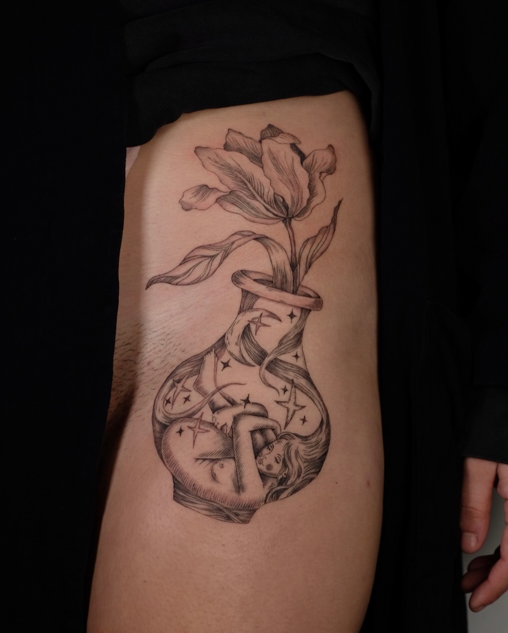 Vica specializes in fine line, illustrative, blackwork tattoo styles, with a portfolio of 5 documented works. Each piece reflects a commitment to technical excellence and artistic innovation.