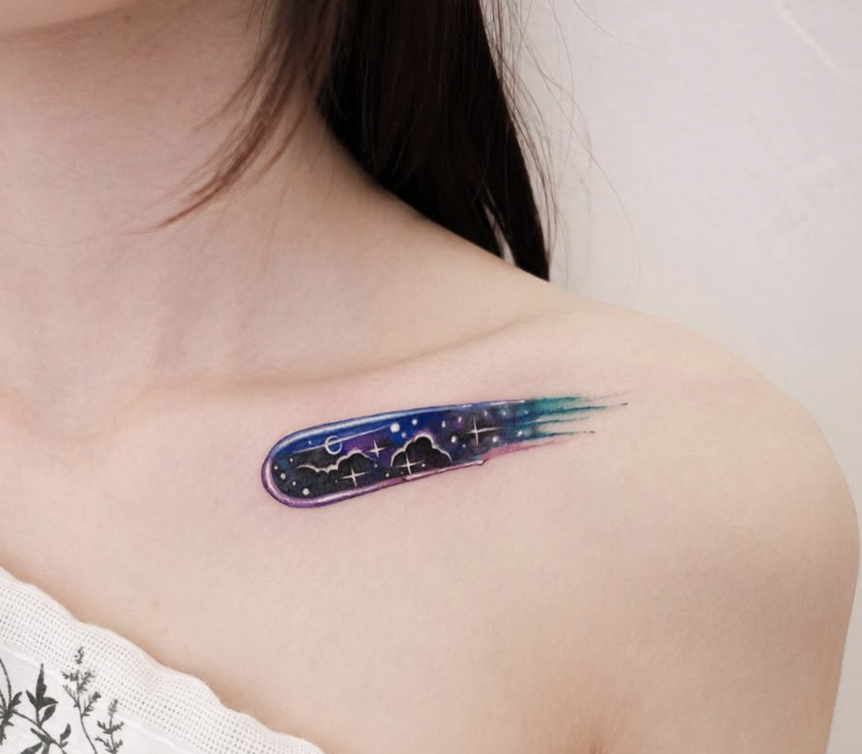 Comet tattoos often occupy central, balanced positions like sternum, upper back between shoulder blades, or forearm for daily visibility and meditation.