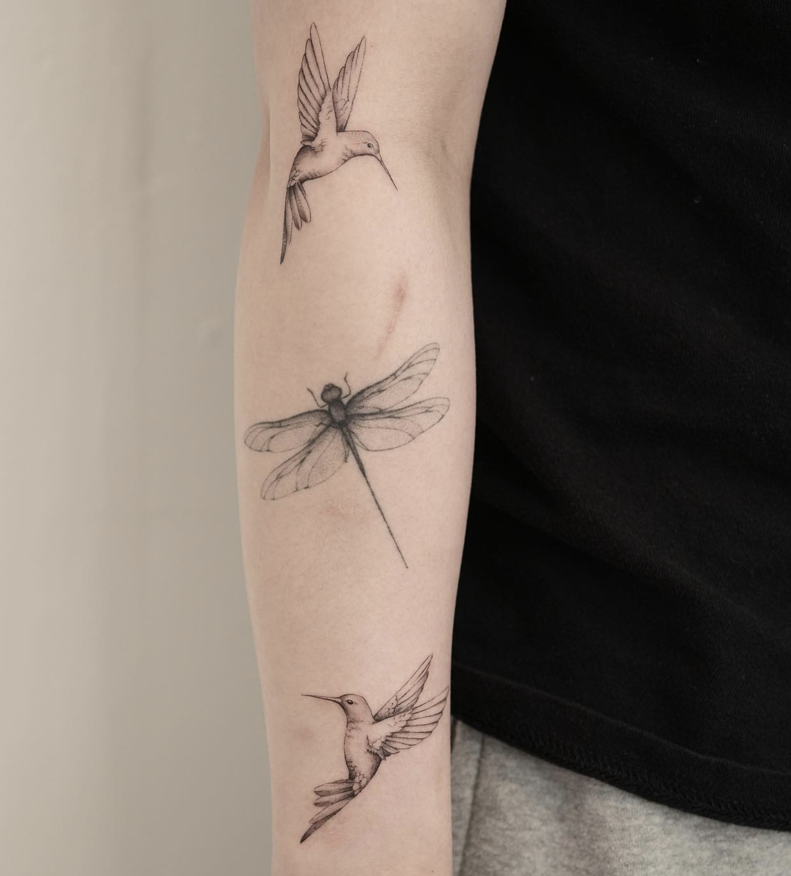 Hummingbird tattoos command attention on prominent areas like chest, back, or thigh. Consider the animal's natural movement - predators facing forward on chest, or in profile along ribs or forearm.