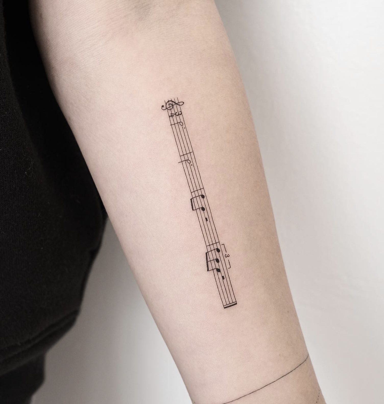 Music note tattoo placement depends on design size and personal preference. Larger pieces suit back, chest, or thigh, while smaller designs work on wrists, ankles, or behind the ear.