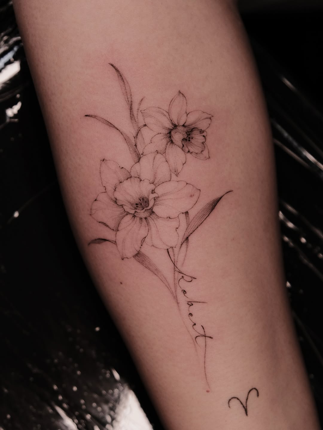 Name tattoo placement depends on design size and personal preference. Larger pieces suit back, chest, or thigh, while smaller designs work on wrists, ankles, or behind the ear.