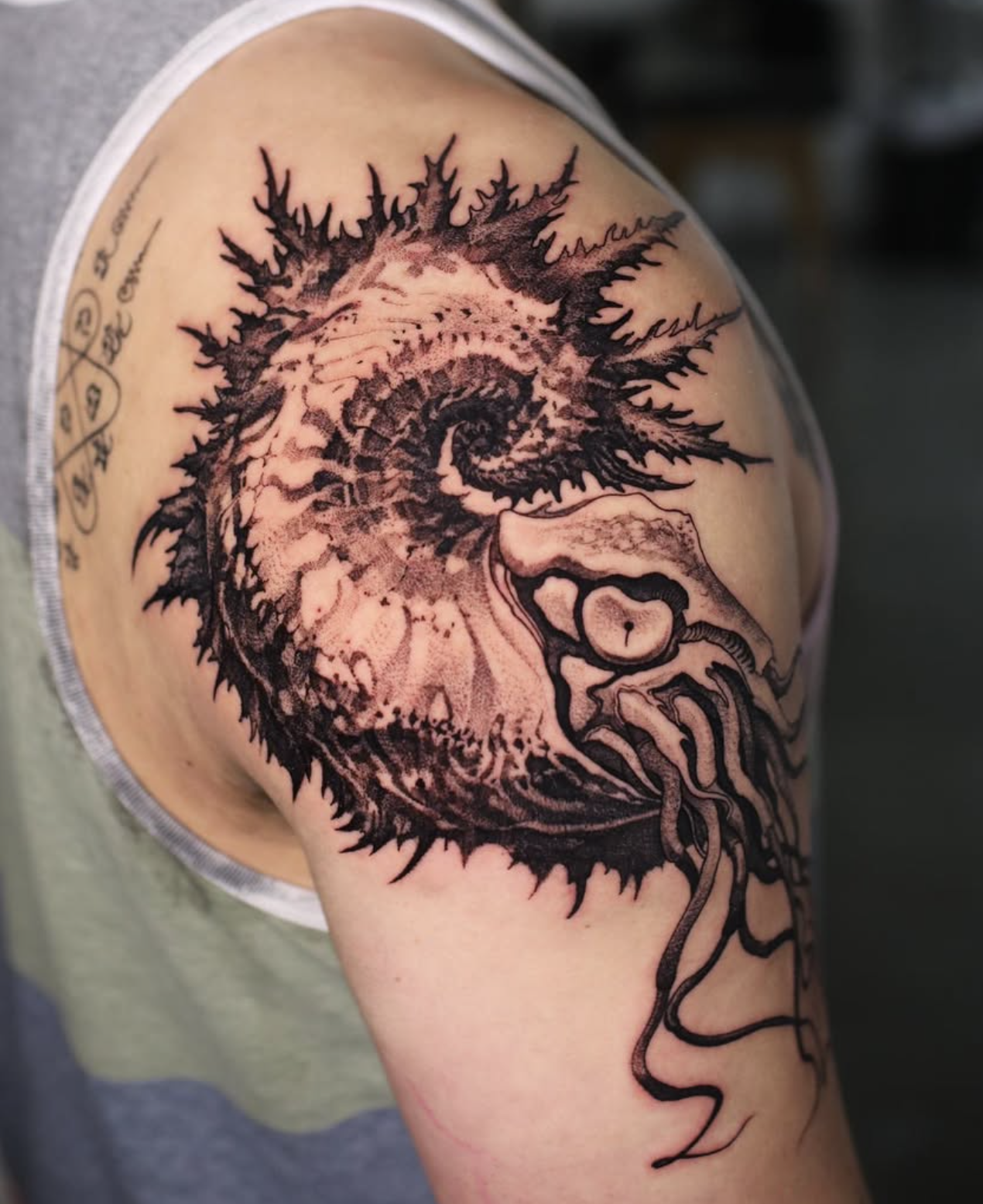 Nautilus tattoos adapt well to various styles from traditional to contemporary. Realistic styles capture authentic detail, while illustrative approaches add artistic interpretation. Our collection features nautilus tattoos in styles including Blackwork, Linework, each bringing unique artistic interpretation to this timeless subject.