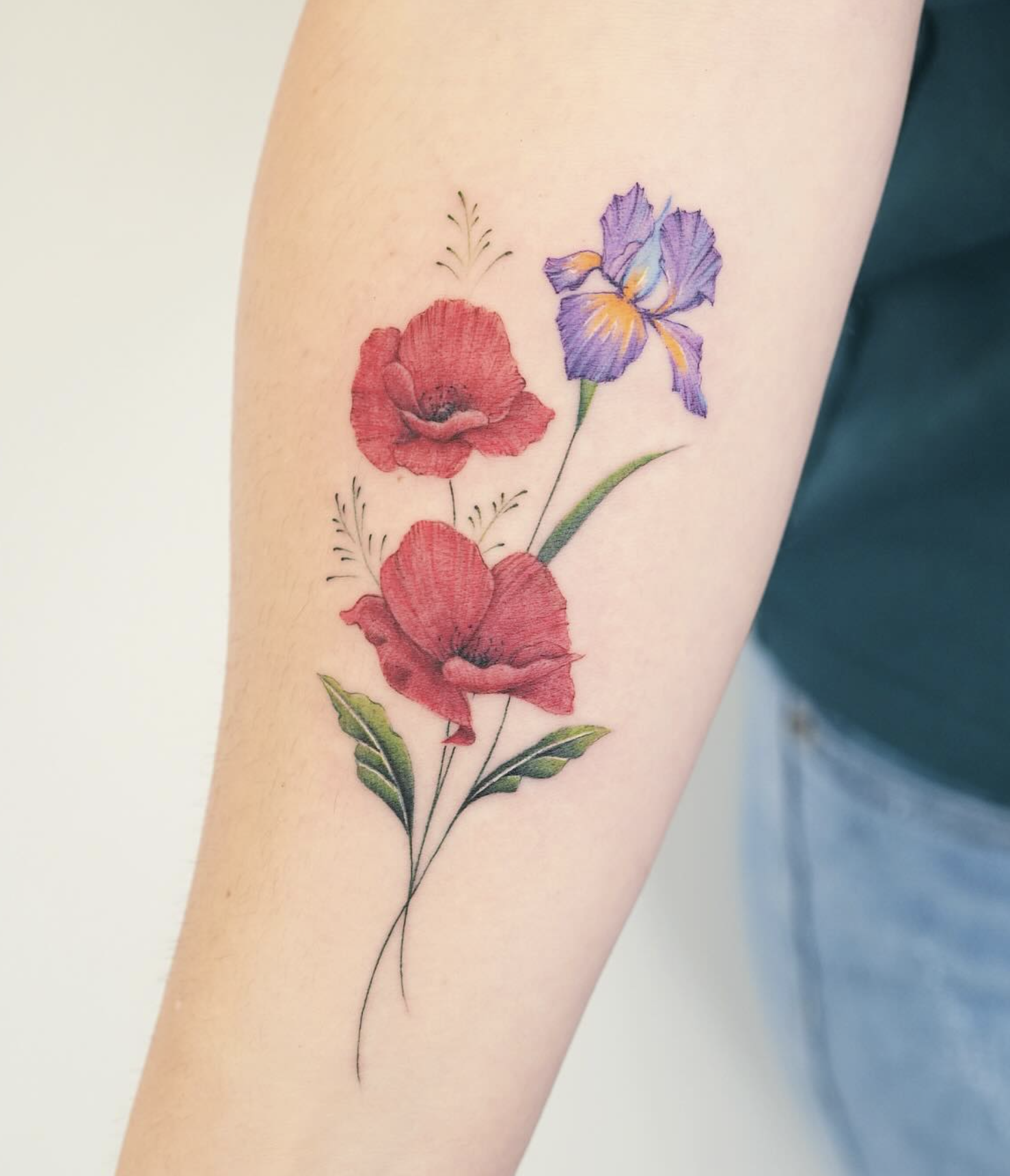 Consider visibility preferences - forearms and calves for display, ribs or hip for intimate placement. The poppy design should complement your body's natural lines.